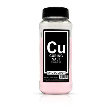 One of the most popular curing salts, Prague powder #1 contains 6.25% sodium nitrite and 93.75% sodium chloride.
