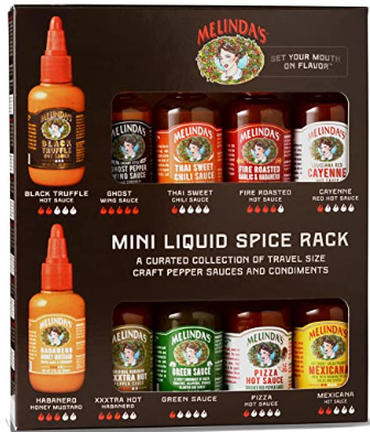 Do you love Melinda’s but don’t know which sauce to try? Well, there’s no better way to sample Melinda’s variety of heat and flavor, than this adorable collection of Melinda’s finest sauces. It’s perfect — Ten little itsy-bitsy squeezable travel size hot sauces that you need in your life. And when we say travel size, we mean it. Each bottle is 2oz and well below the TSA 3oz threshold. You can put them in your carryon, purse, knapsack or pocket. This is the ultimate gift for your spicy loving friends and family.